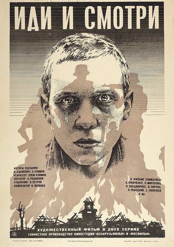 Год производства 1985 Страна СССР Жанр драма, военный, история Режиссер Элем Климов Возраст 16+ Время 136 мин. / 02:16 1943 год, Великая Отечественная война, территория Белоруссии. 16-летний мальчишка Флера, откопав среди обрывков колючей проволоки, ржавых пулемётных лент и простреленных касок карабин, отправляется в лес к партизанам.