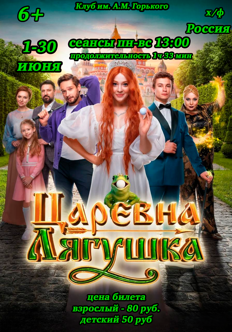 Год производства 2025 Страна Россия Жанр семейный, приключения, фэнтези Режиссер Александр Амиров Сценарий Василий Ровенский, Ольга Клемешева, Владимир Куксин Зрители 1.7 млн Сборы в России $7 603 542 Премьера в России 6 марта 2025, «Наше Кино» Возраст 6+ Время 1 ч 33 мин В пруду городского парка живёт лягушка, которая очень любит смотреть фильмы в летнем кинотеатре. Однажды она увидела мультфильм, в котором такая же, как она, ловит стрелу и превращается в прекрасную девушку. Это так впечатляет её, что она принимает происходящее за действительность и отправляется на поиски волшебной стрелы. Но вместо неё ловит мячик для гольфа.