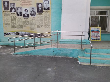Установлен стационарный пандус с поручнями на наружной лестнице здания