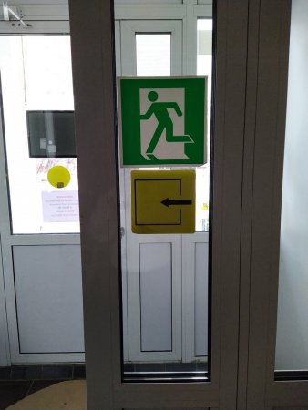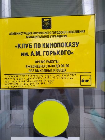 На входных дверях учреждения размещена вывеска об учреждении со шрифтом Брайля