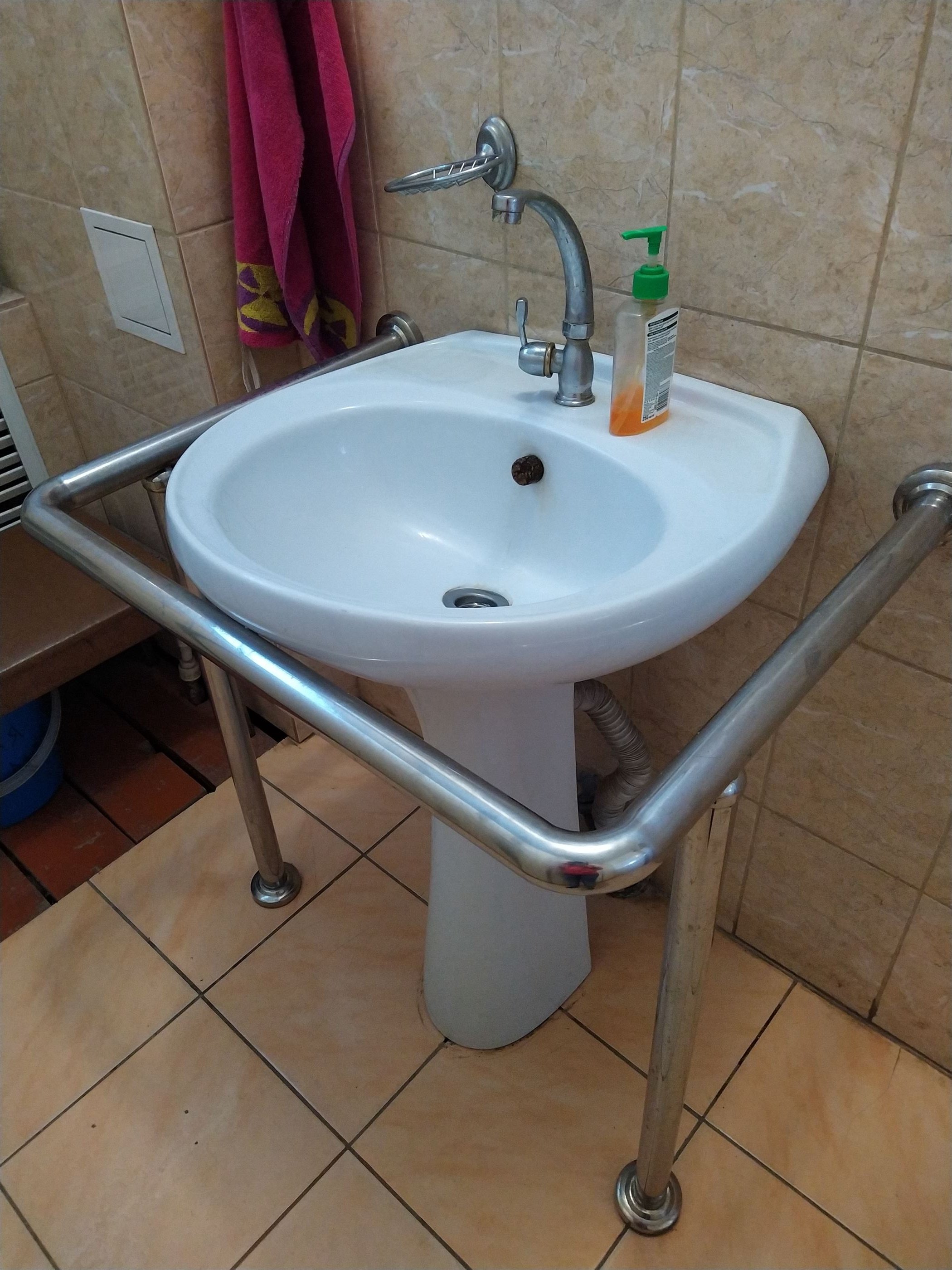 установлены в туалетной комнате поручни: у раковины и унитаза