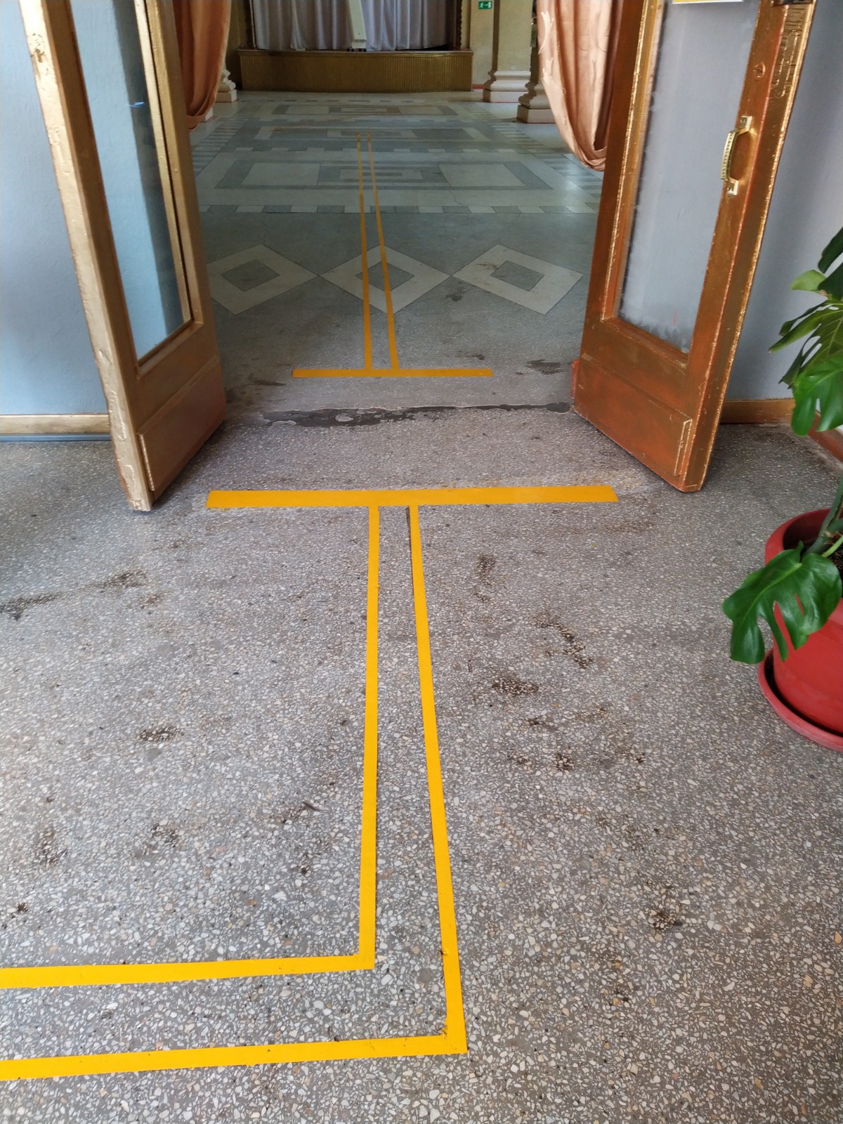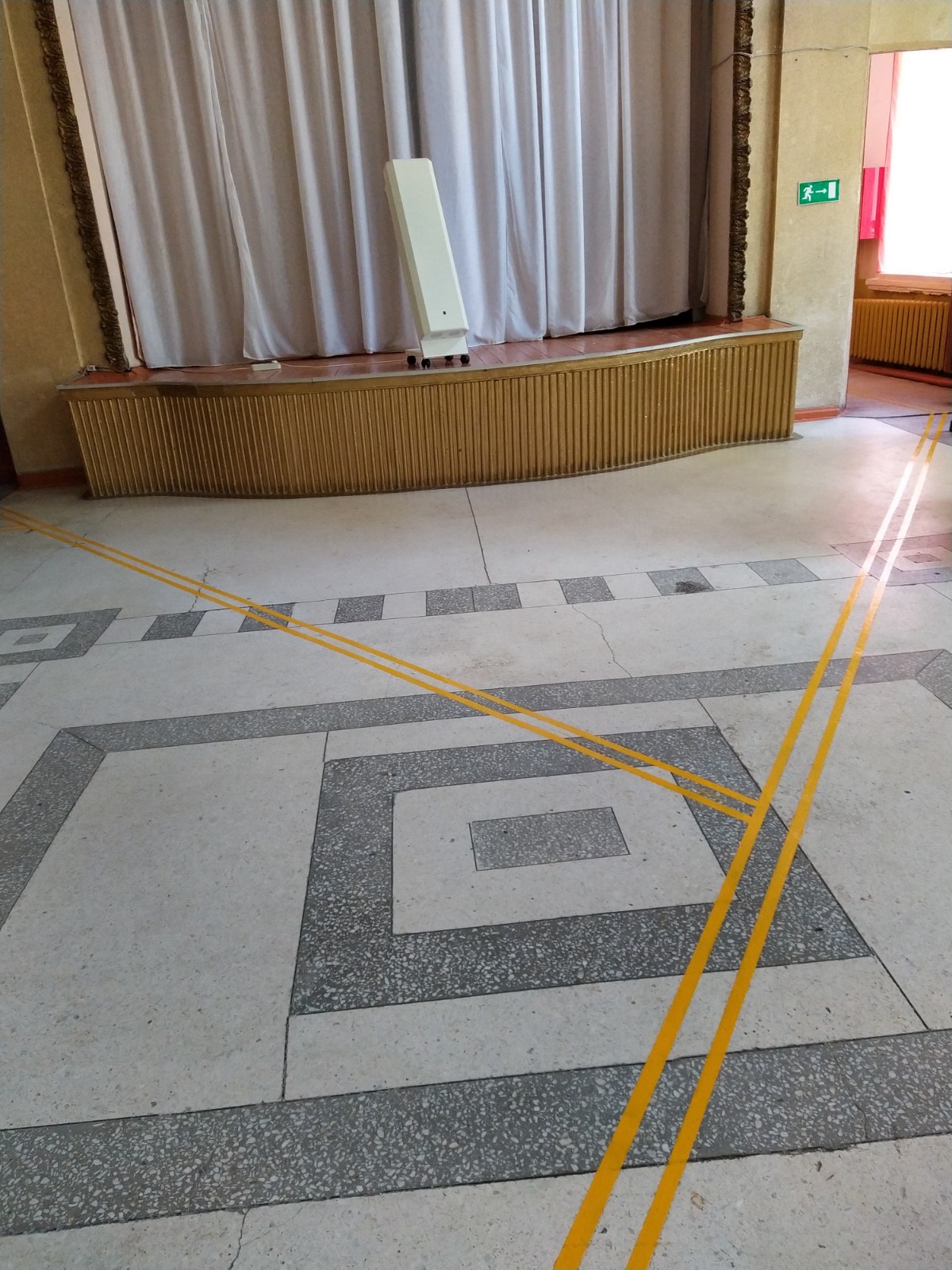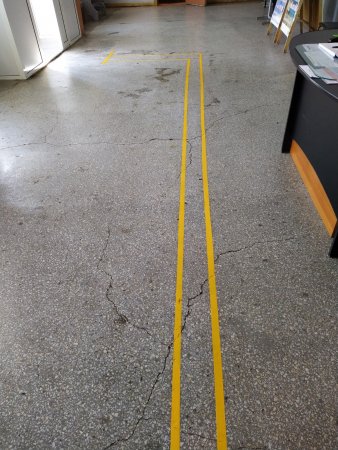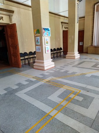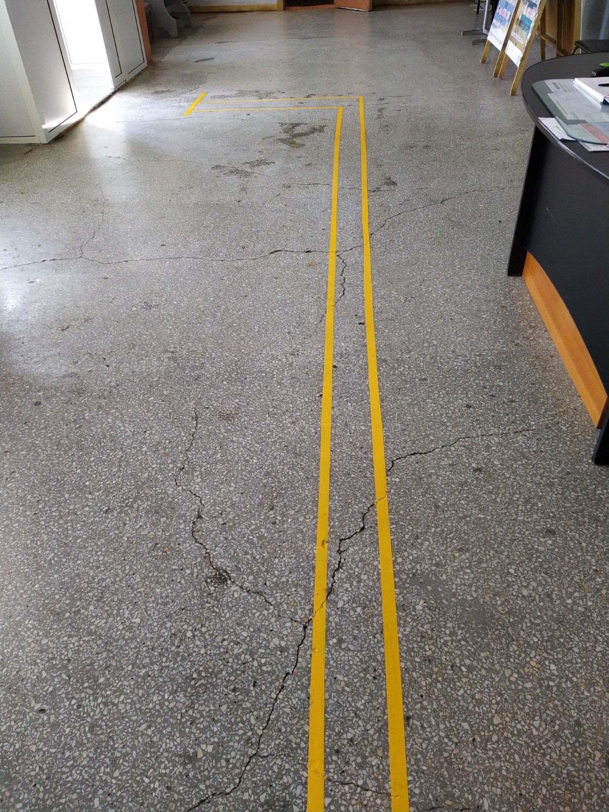 Нанесена контрастная тактильная направляющая на полу внутри учреждения